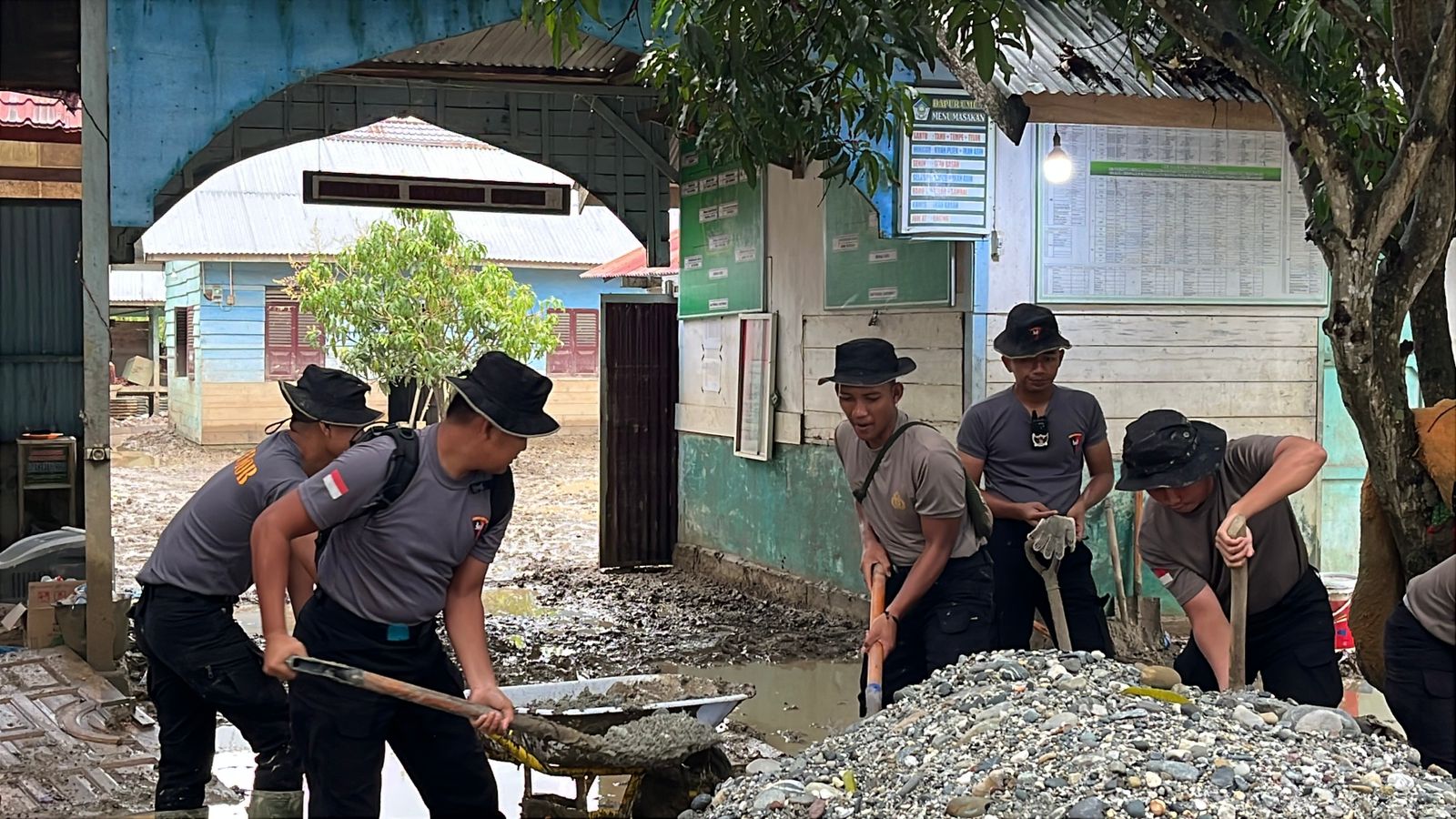 Sementara itu, di Dayah Babul Huda, personel Brimob melaksanakan pembersihan bilik santri yang sebelumnya dipenuhi lumpur dan sisa material banjir. Pembersihan dilakukan untuk menciptakan lingkungan yang bersih dan sehat bagi para santri sebelum kembali menempati asrama.
