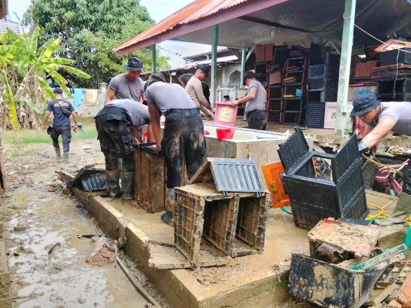 Kapolres Aceh Utara AKBP Trie Aprianto, melalui Kasi Humas Polres Aceh Utara AKP Bambang, menyampaikan bahwa kegiatan pembersihan terus dilakukan secara bertahap sesuai dengan kebutuhan di lapangan.