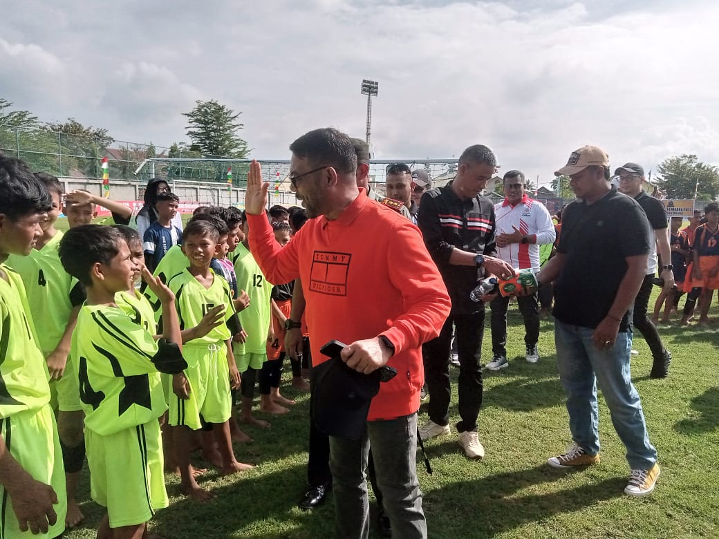 “Harapan saya, turnamen ini menjadi ajang silaturahmi sekaligus sarana untuk membina anak-anak agar cerdas dalam berpikir, kuat dalam hati, dan tangguh secara fisik. Selanjutnya, kita juga akan berbagi makanan gratis untuk anak-anak sekolah sebagai bentuk dukungan saya terhadap program makan bergizi gratis dari Bapak Prabowo-Gibran. Dengan memohon ridho Allah SWT, saya dengan ini resmi membuka acara Elementary School Football Tournament,” ujarnya.