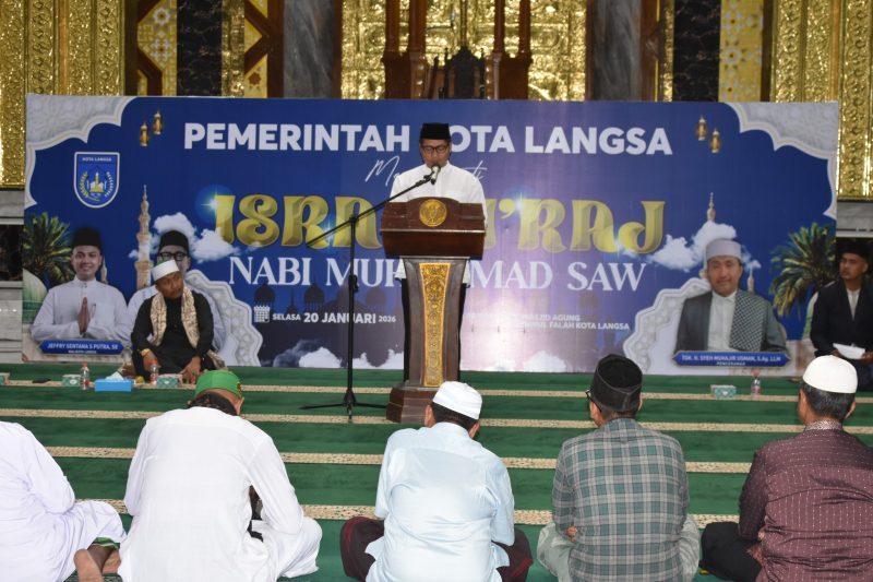 Langsa | Atjeh Terkini.id – Pemerintah Kota (Pemko) Pemko Langsa menggelar Tausiah Akbar dalam rangka memperingati Isra’ Mi’raj Nabi Muhammad SAW Tahun 1447 Hijriah di Masjid Agung Darul Fallah Kota Langsa, Selasa (20/1/2026) malam.