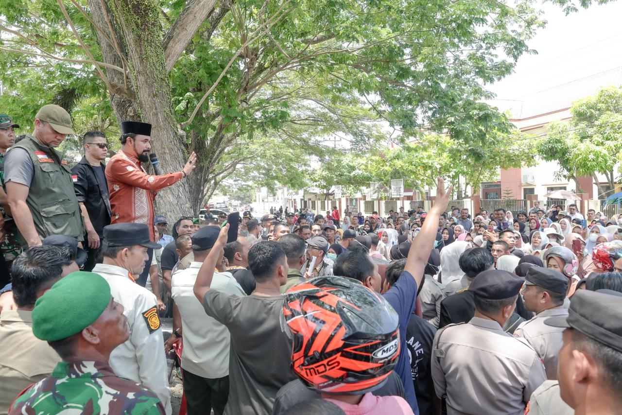 Sementara itu, Bupati Aceh Timur, Iskandar Usman Al-Farlaky, S.H.I., M.Si., menyambut langsung aksi unjuk rasa yang dilakukan sejumlah masyarakat di gerbang Pendopo Bupati di Idi.
