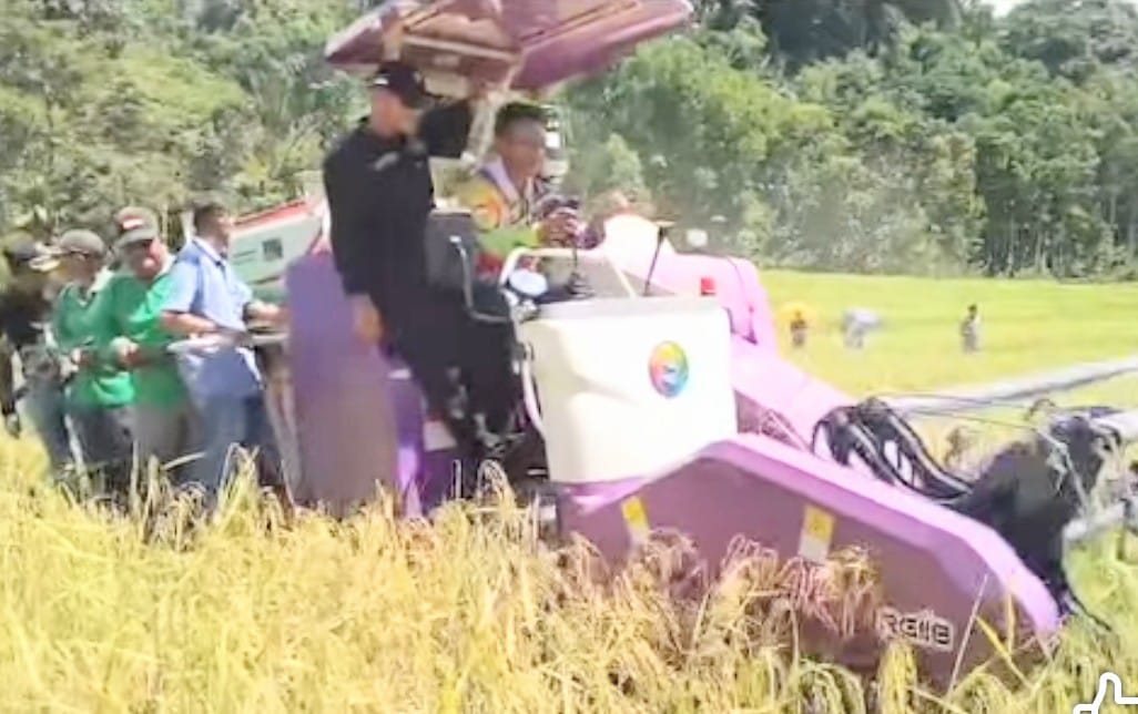Kegiatan panen padi perdana menggunakan alsintan Combine Harvester langsung dilakukan oleh Pj. Bupati Simeulue, Teuku Reza Fahlevi yang didampingi Kepala Dinas Pertanian dan Pangan Kabupaten Simeulue Samsuar, SP dan dihadiri Forkopimda Simeulue.
