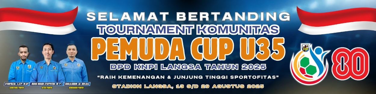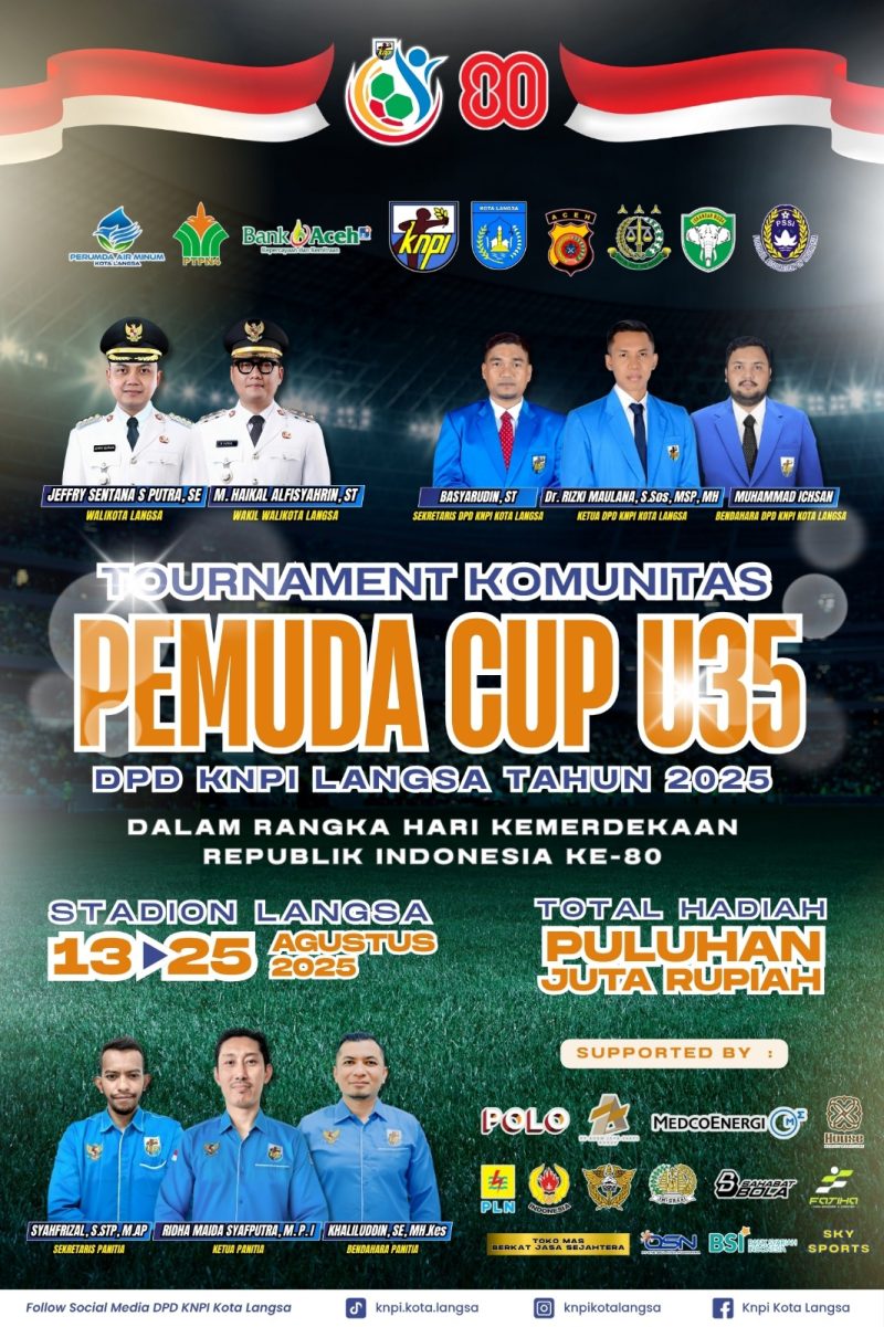 Langsa | Atjeh Terkini.id – Memperingati HUT RI ke 80, KNPI Langsa akan menggelar Tournament bola kaki usia 35 di Stadion Langsa yang dimulai tanggal 13 sampai 25 Agustus 2025.