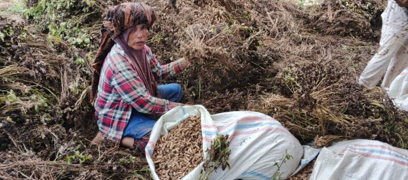 Kondisi lebih sulit dialami oleh para buruh tani harian seperti Mak Dah (58). Ia bekerja sebagai pemetik kacang dengan penghasilan yang sangat terbatas. “Dalam sehari saya cuma bisa isi 4 kaleng. Satu kaleng dihargai lima ribu rupiah. Jadi ya cuma dua puluh ribu sehari. Tapi tetap kami syukuri, ini pekerjaan yang kami bisa,” ungkapnya.