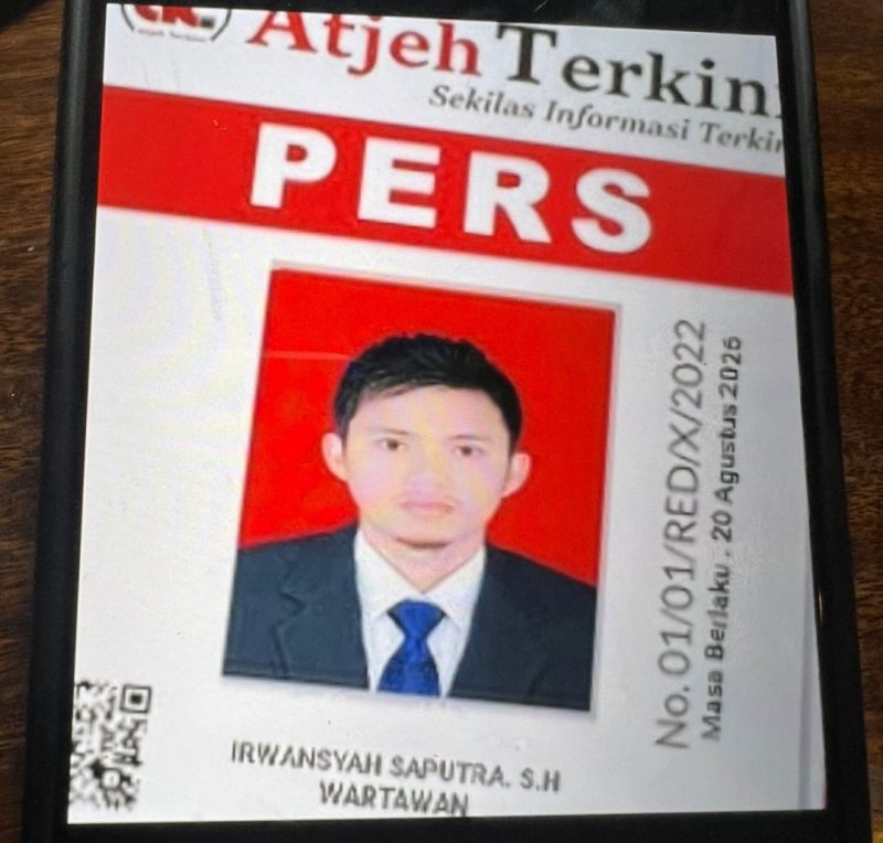 Melalui handphone seluler menyebutkan. “Bang ada id card Atjeh Terkini.id, foto saya tapi nama Irwansyah Saputra. S.H, coba Abang tertibkan. Akhir dari komunikasi singkat. Kata Safrizal Senin (23/2/2026), sekira pukul 19. 20.WIB.