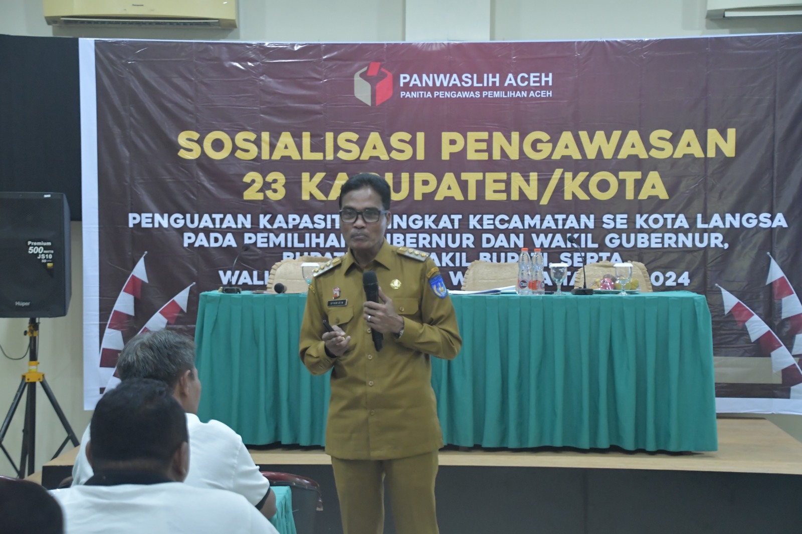 Langsa | Atjeh Terkini.id – Pj Walikota Langsa Dr. Syaridin, S.Pd., M.Pd menjadi pemateri pada sosialisasi pengawasan untuk penguatan kapasitas di tingkat kecamatan di kota Langsa pada pemilihan serentak tahun 2024.