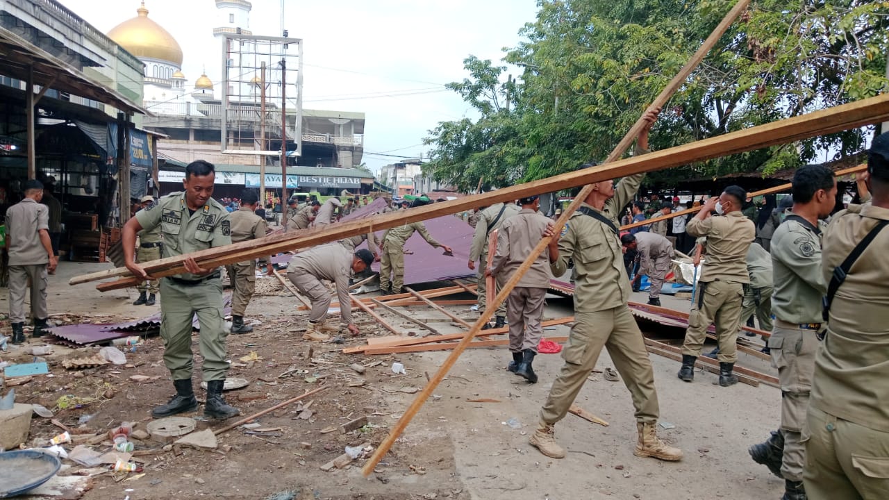 Sekretaris Satpol-PP Muhammad Tarmizi SE MM mengatakan, seharusnya lapak tersebut di bongkar kemarin, namun para pedagang meminta penanguhan agar dapat memindahkan dagangan terlebih dahulu sebelum di bongkar.
