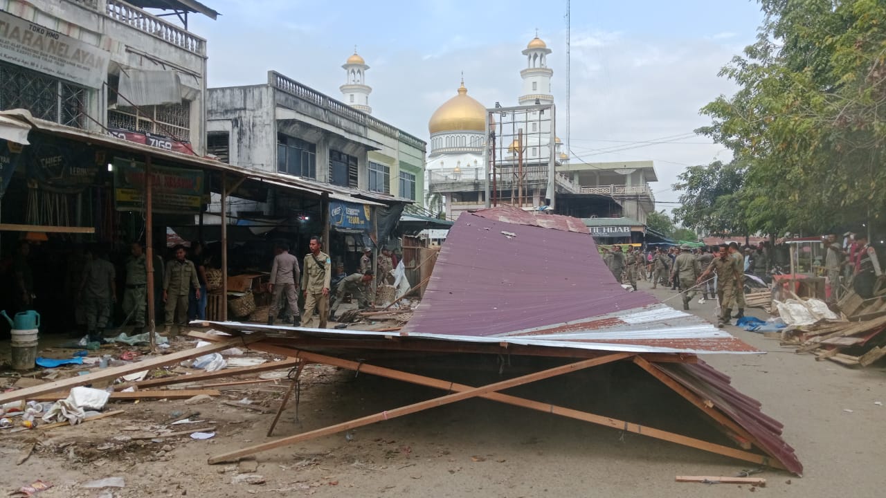 “Seharusnya kemarin di bongkar, namun pedagang minta tempo sampai hari ini, agar mereka dapat mengangkut dagangannya terlebih dahulu,” ujar M.Tarmizi.