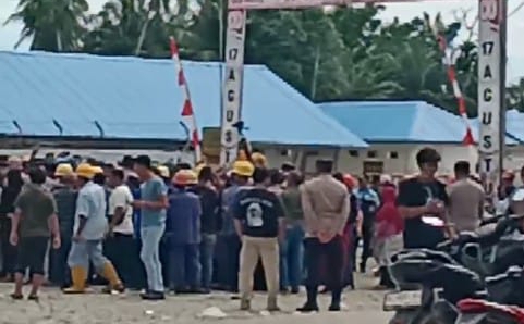 Massa menuntut pabrik kelapa sawit di Desa Rimo di pindah atau di tutup karena dinilai tidak layak berada di kawasan perkotaan.