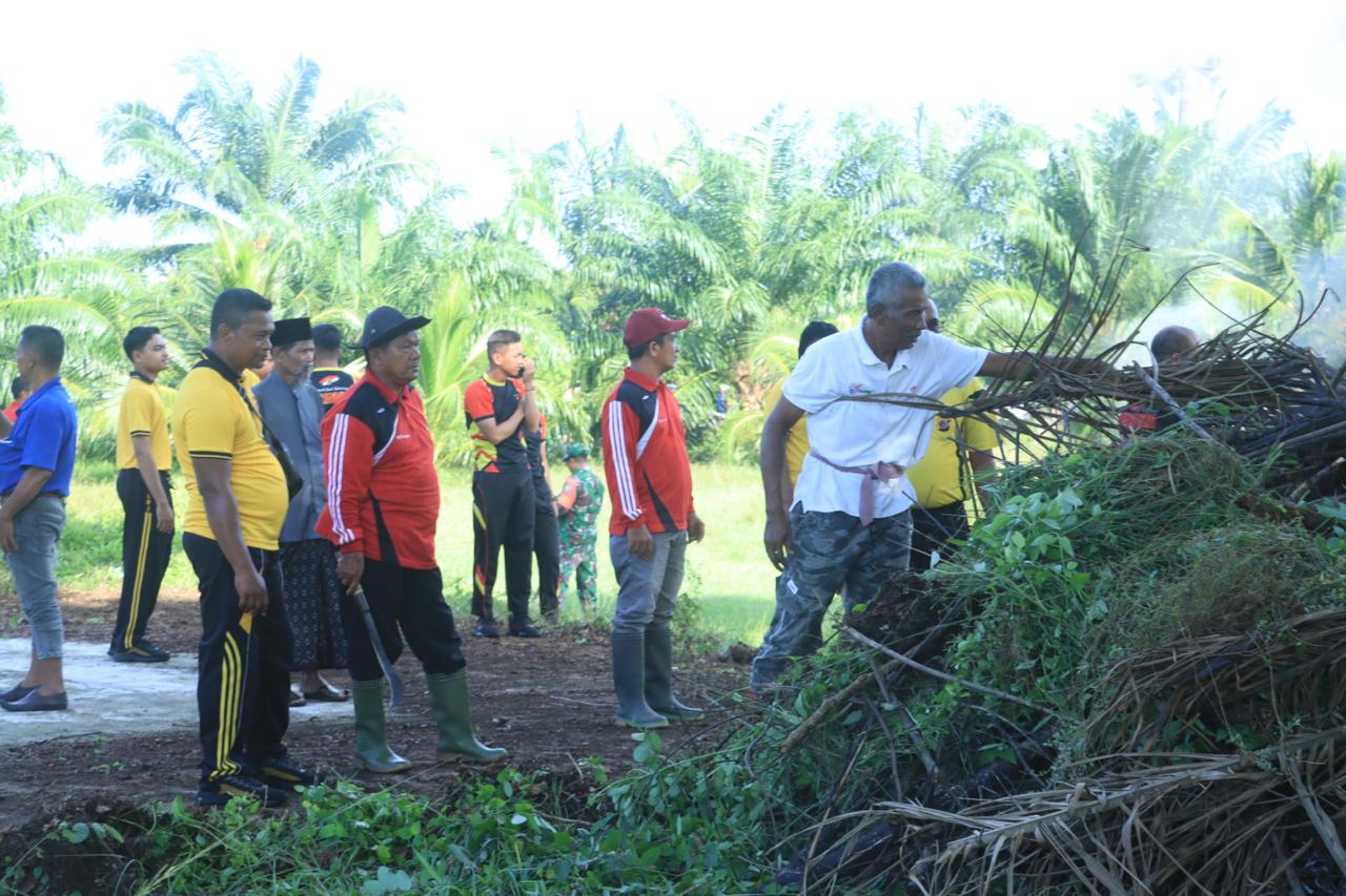 “Polres Aceh Utara bersama Forkopimda, Muspika Baktiya Barat dan masyarakat kompak membersihkan lahan/lokasi persiapan pembangunan sekolah rakyat yang berlokasi di Gampong Lhok Iboh, Sampoylniet, Kecamatan Baktiya Barat,” ujarnya.