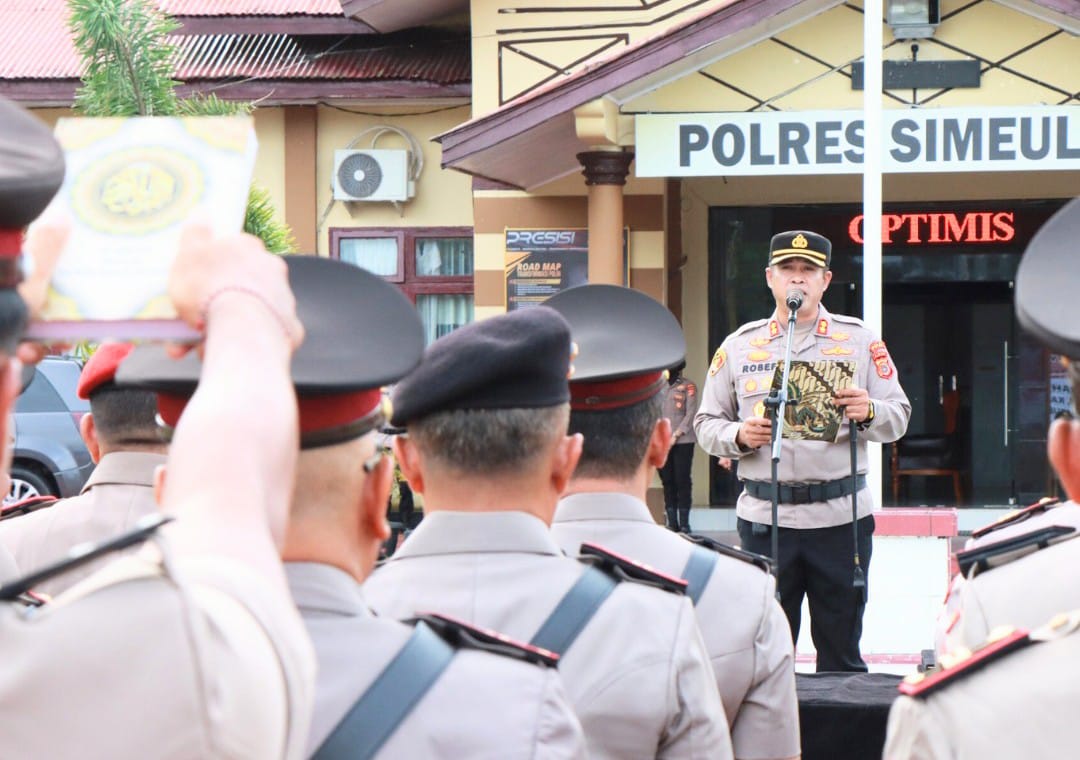 Kegiatan ini dipimpin langsung oleh Kapolres Simeulue, AKBP Rosef Efendi, S.I.K, M.H dan berlangsung dengan khidmat di halaman Mapolres Simeulue.