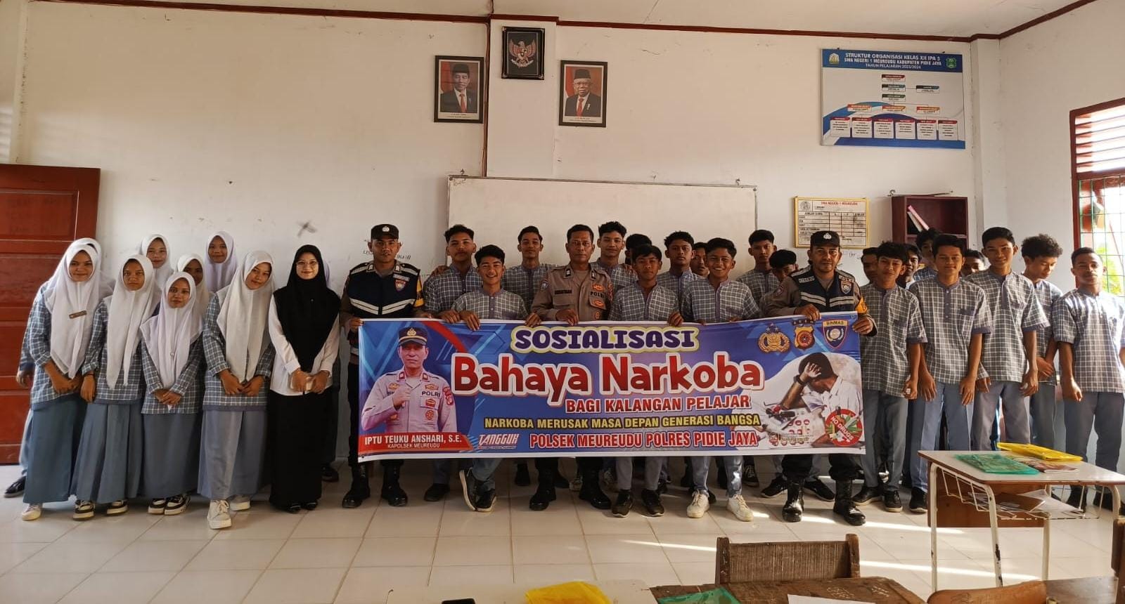 Polsek Meureudu Polres Pidie Jaya menggelar sosialisasi bahaya narkoba di SMA Negeri 1 Meureudu pada Rabu, 5 Februari 2025.