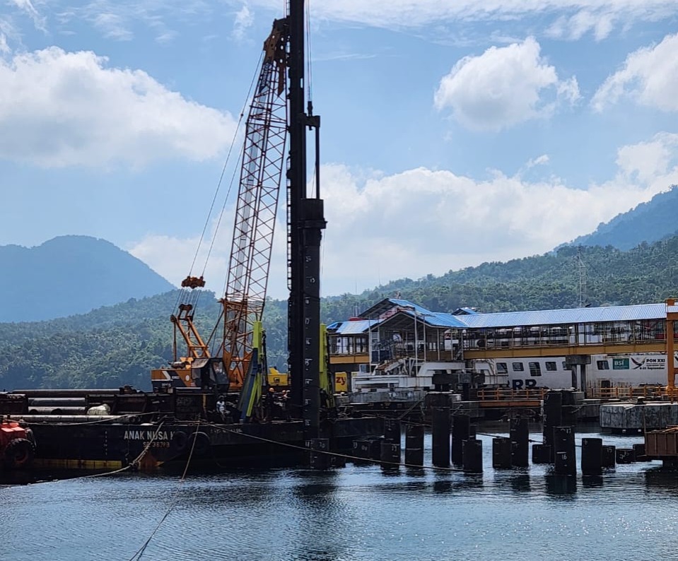 Dari pantauan di lokasi Pelabuhan Balohan hingga kini pekerjaan proyek pemancangan pembuatan dermaga masih dikerjakan meskipun sudah lewat waktu pelaksanaan.