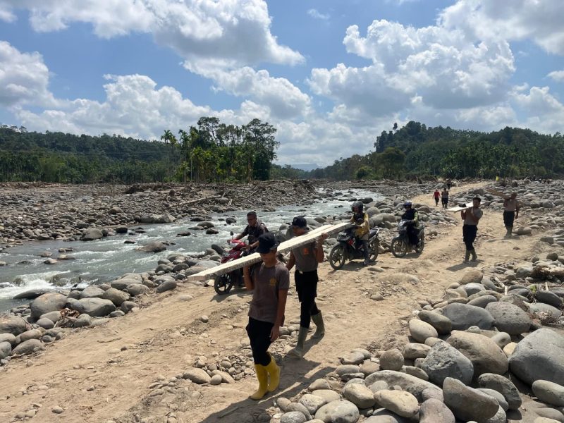 Pembangunan jembatan darurat tersebut dipimpin langsung oleh Danki Penugasan AKP Elan Suherlan, S.H., sebagai respons cepat atas terputusnya akses penghubung antarwilayah akibat bencana banjir yang melanda kawasan tersebut.