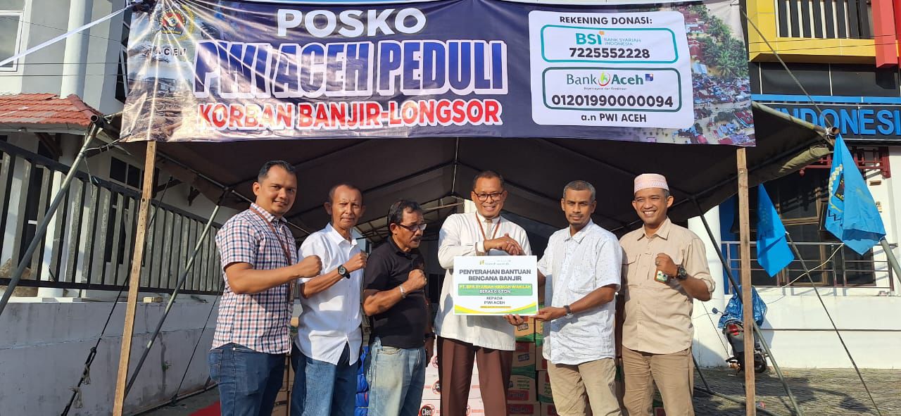 Banda Aceh l Atjeh Terkini l PWI Aceh baru saja menerima saluran dana Rp 10 juta setara dengan harga beras 0.6 Ton BOR Bank Hikmah Wakilah di posko PWI peduli di Banda Aceh, Jumat (5/12).