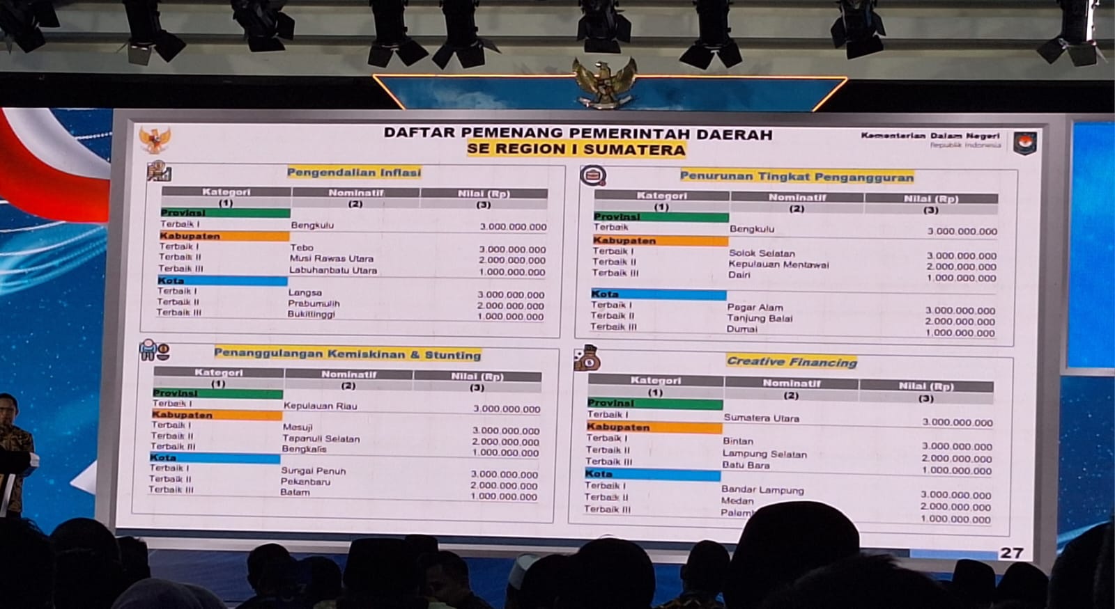 Menurut, Tito Karnavian, penghargaan ini secara resmi memberikan apresiasi kepada sejumlah pemerintah daerah yang dinilai sukses menjaga stabilitas ekonomi.