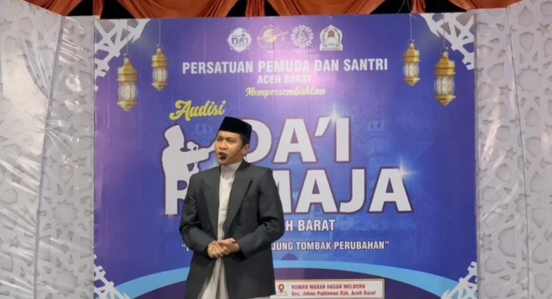 Meulaboh | Atjeh Terkini.id – Resyad Joed Loen, peserta dengan nomor undian 002 asal Kecamatan Kaway XVI, mendapat nilai tinggi 99 dari dewan juri. Ia tampil memukau di acara grand final sekaligus penutupan Audisi Da’i Remaja se-Aceh Barat 2025.