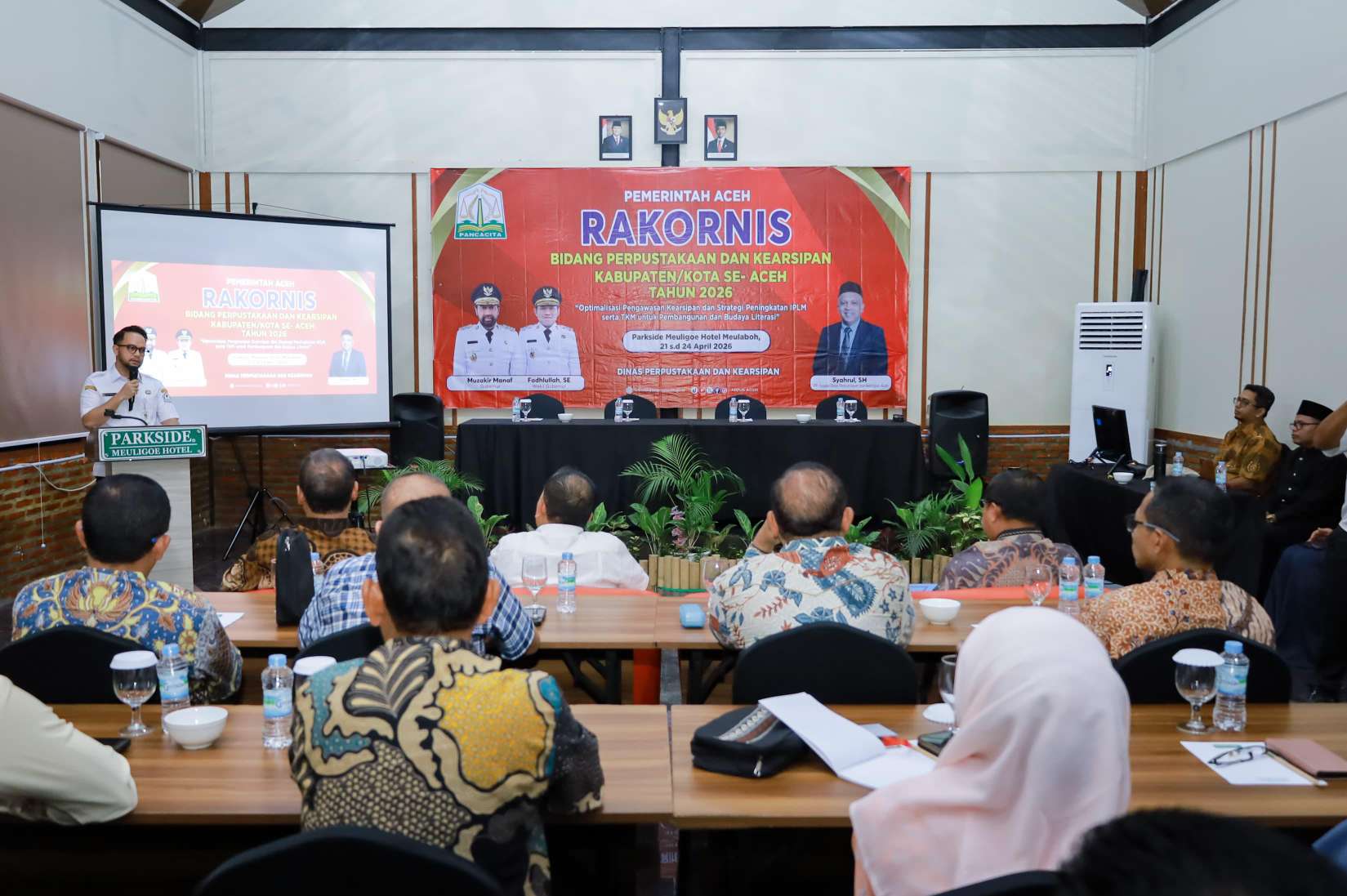 Meulaboh | Atjeh Terkini.id – Pemerintah Aceh menggelar Rapat Koordinasi Teknis (Rakornis) Bidang Perpustakaan dan Kearsipan Kabupaten/Kota se-Aceh Tahun 2026 di Hotel Parkside Meuligoe Meulaboh, Rabu (22/4/2026).