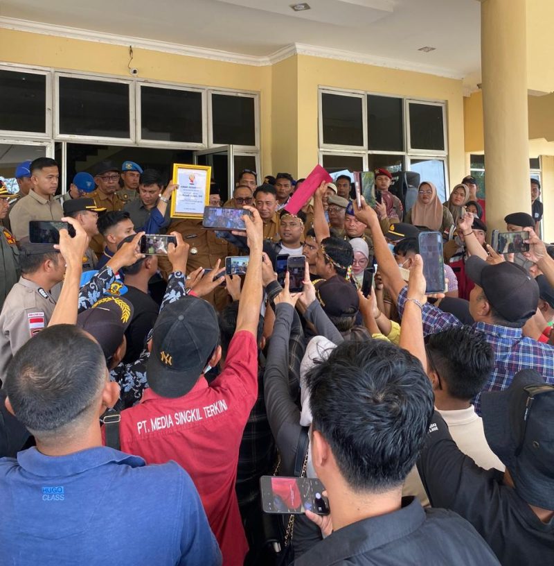 Selain menyampaikan orasi, massa juga secara simbolis memberikan “penghargaan rekor miring” dengan kategori “Bupati dengan Khayalan Tinggi di Dunia” kepada Bupati Aceh Singkil. Pemberian penghargaan tersebut disebut sebagai bentuk kritik dan sindiran terhadap sejumlah janji maupun pernyataan yang dinilai tidak sejalan dengan kondisi di lapangan.