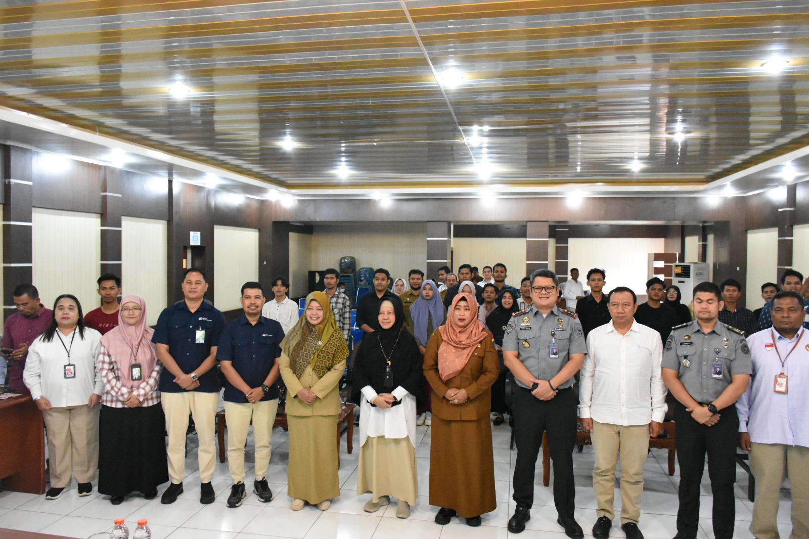 Kepala Kantor Imigrasi Kelas II TPI Langsa Indra Sakti Suhermansyah, Account Representative BPJS Ketenagakerjaan Cab Langsa Martunis, Ahli Muda BP3MI Aceh Delina Haloho, S.Si, dan para peserta di Aula Setdakot Langsa, Selasa (29/7/2025).