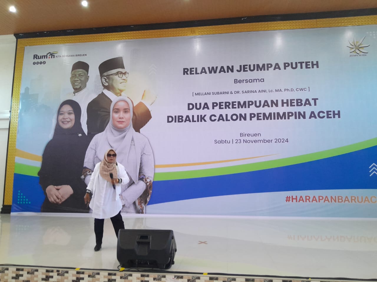 Dalam pertemuan tersebut ternyata ada Dua Perempuan Hebat, dibalik Calon Pemimpin Aceh, dia adalah Hj Mellani Subarni dan Dr Sarina Aini Lc.MA.Ph.D.CWC, menyatakan siap mendukung dan mengantarkan pasangan ini menjadi Gebernur Aceh 2024-2030.
