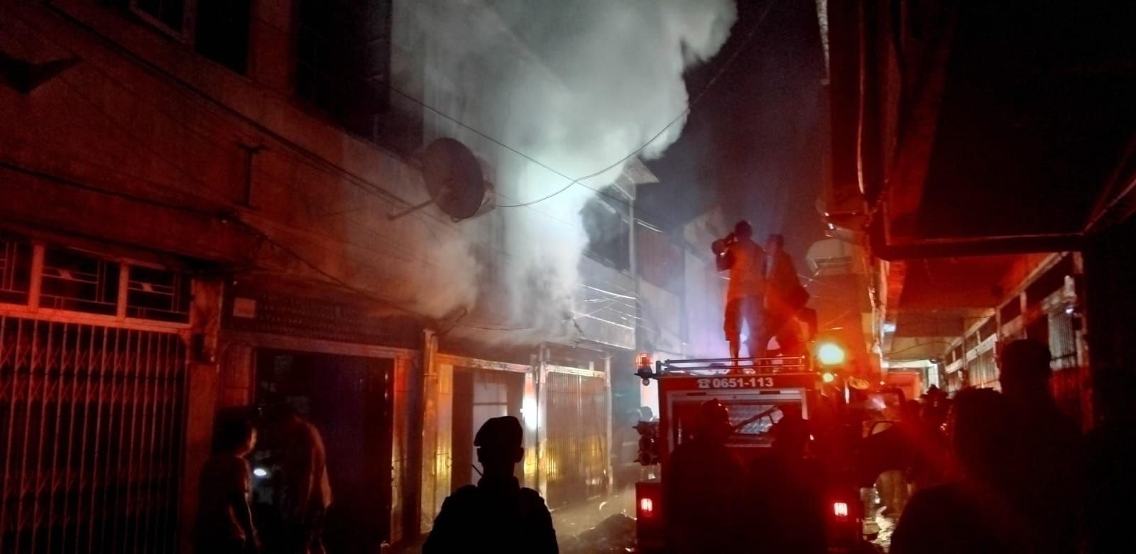Setibanya di lokasi, petugas Damkar mendapati api sudah membesar di ruko lantai dua tersebut. Diduga kuat, bangunan itu digunakan sebagai gudang penyimpanan aksesoris jok mobil. Kobaran api berhasil dipadamkan sekitar pukul 23.30 WIB.