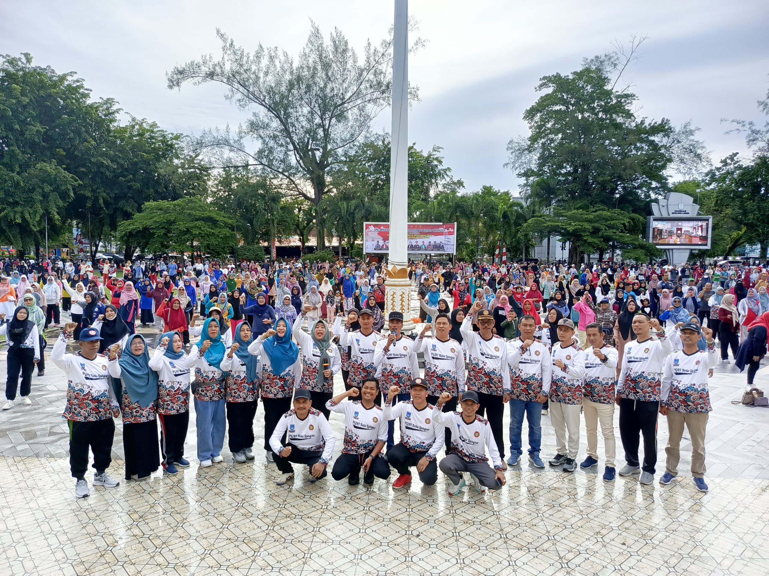 Senam Sehat Massal dalam rangka memperingati menyambut Hari Guru Nasional (HGN) dan Hari Ulang Tahun (HUT) Persatuan Guru Republik Indonesia (PGRI) yang ke 79 di Lapangan Merdeka Kota Langsa.