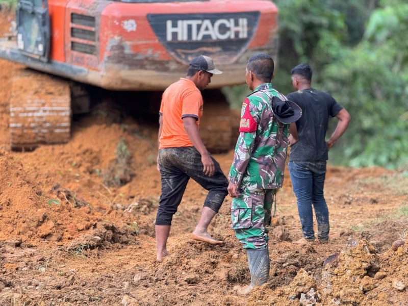 Peninjauan ini bukan seremoni semata. Personel Satgas memastikan sendiri kondisi medan, arah aliran air, hingga potensi dampak terhadap badan jalan.