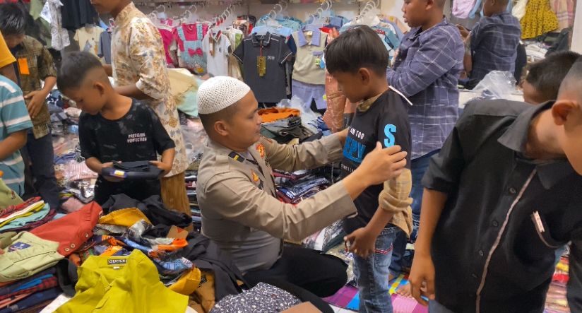 Aceh Utara | Atjeh Terkini.id – Polisi Peduli Aceh Utara, Ipda Irvan membawa 60 anak yatim untuk membeli pakaian lebaran ke pasar di kawasan Pantonlabu, Kecamatan Tanah Jambo Aye, Aceh Utara, Sabtu (22/03/2025).