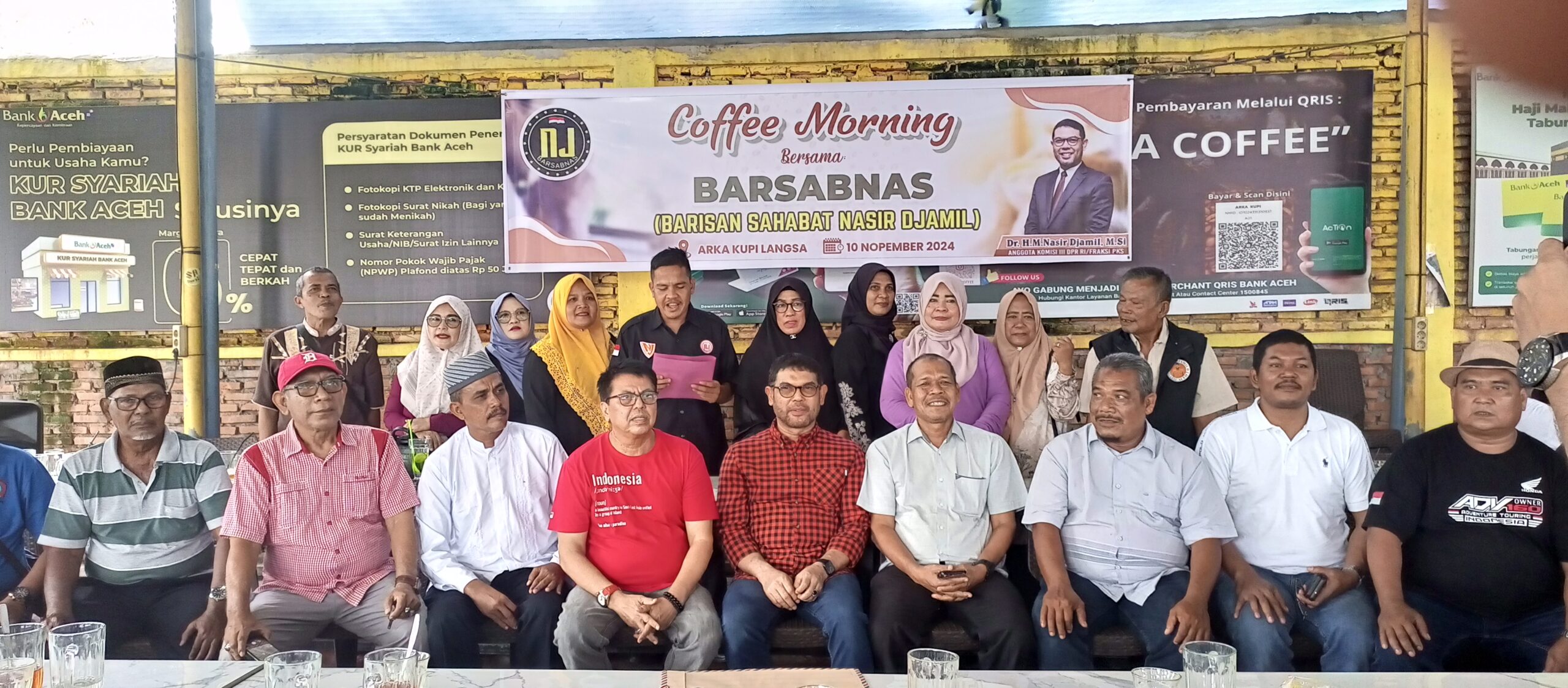 Langsa | Atjeh Terkini.id – Anggota Komisi III DPR RI Dr.H.M.Nasir Djamil melakukan silaturahmi dengan Ratusan Barisan Sahabat Nasir Djamil (Barsabnas) dengan ngopi bareng dan sarapan pagi di Arka Kupi, Minggu (10/11/24).