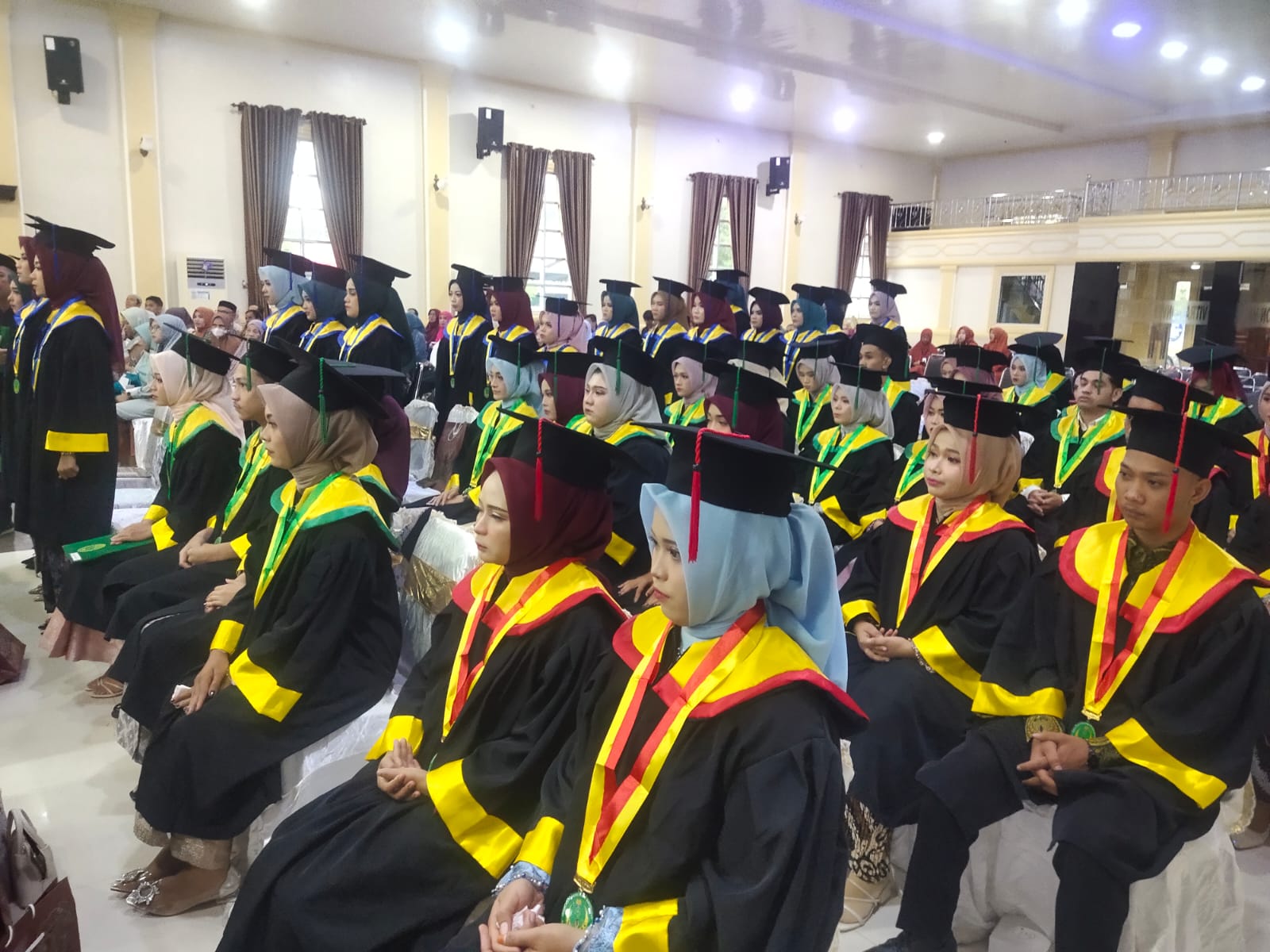 Adapun para mahasiswa yang di wisuda meliputi Program Studi S1 Administrasi Rumah Sakit ada 10 mahasiswa, lalu untuk S1 Kesehatan Lingkungan ada 23 mahasiswa dan untuk D-III Kebidanan ada 17 mahasiswa.