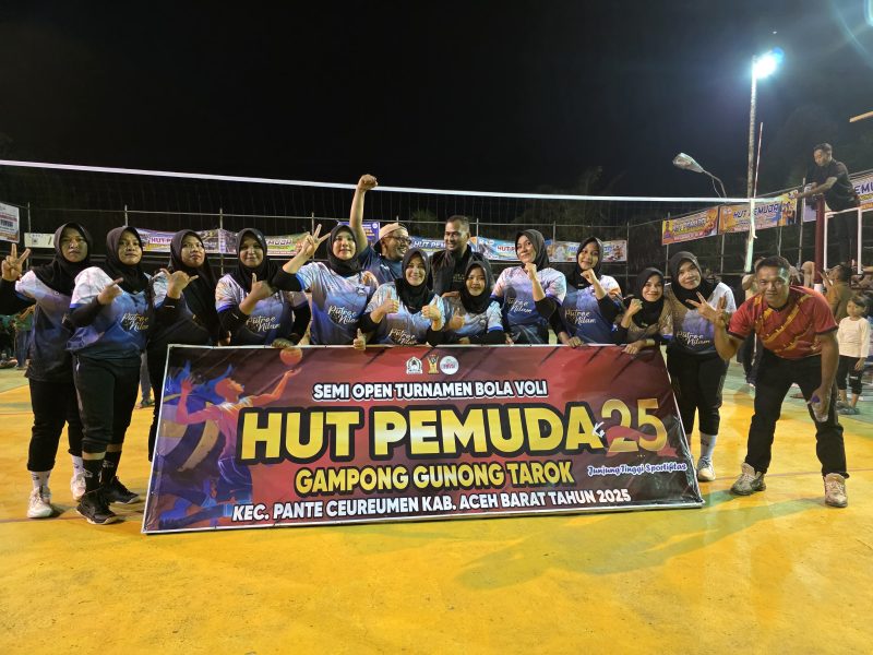 Meulaboh | Atjeh Terkini.id — Lapangan voli Gampong Gunong Tarok, Kecamatan Pante Ceureumen, Kabupaten Aceh Barat, bergemuruh pada Jumat malam (15/8/2025).