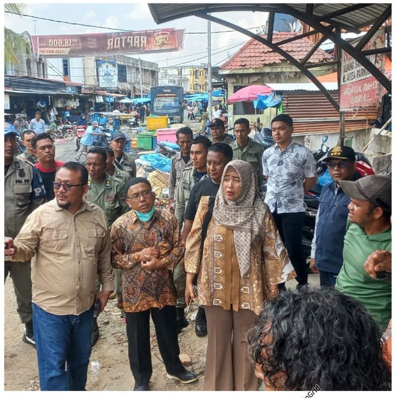 Ditemani puluhan satpol PP, Sekda melihat langsung kondisi seraya mengingatkan ke sejumlah pedagang untuk menjaga kebersihan pusat pasar kota Langsa. (**)