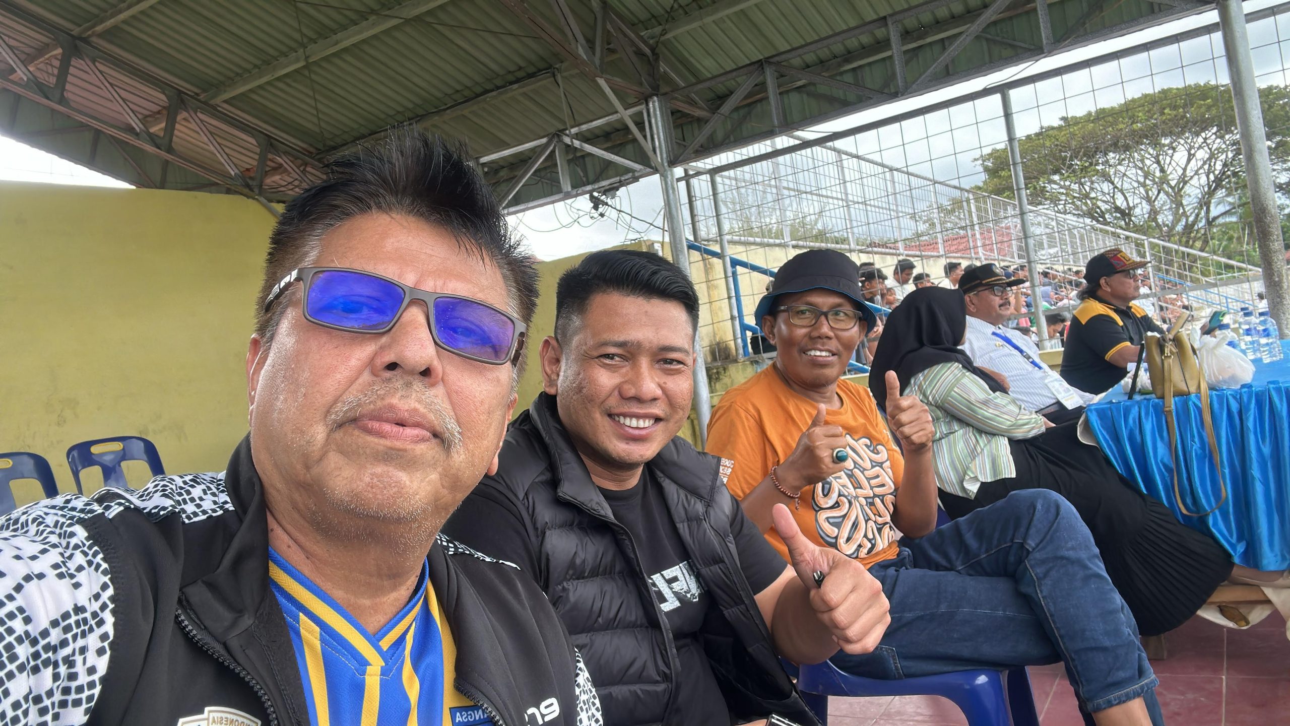 Ketua Umum PSBL H.Hasan Basri SH MH, (kanan) anggota DPRK Aceh Timur Azhari juga matan Manager PSBL, Sekretaris Umum PSBL Ray Iskandar SE (kiri) saat menyaksikan pertandingan PSBL VS PSLS, Rabu (29/1/25) sore.