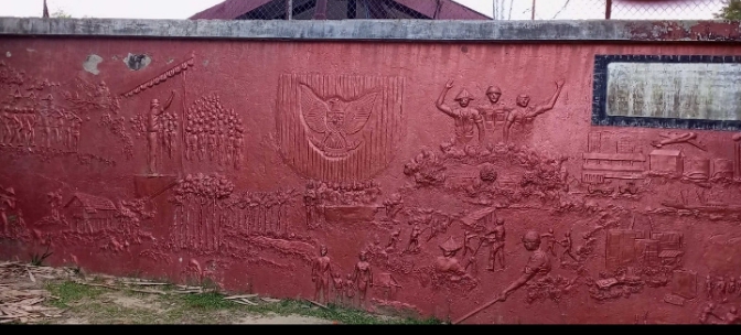 Tugu ini melambangkan sejarah perjuangan para pahlawan. Apalagi di area taman terdapat cerita perjuangan yang tersemat melalui relief di dinding beton.
