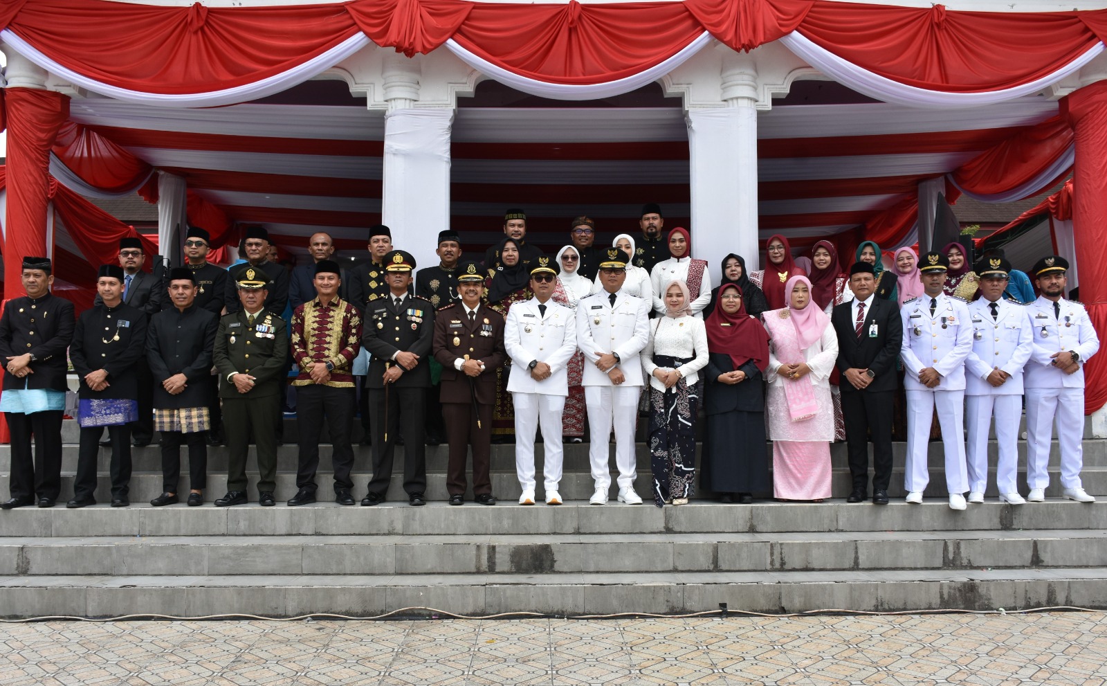 Tampak juga Sekda Kota Langsa Dra. Suhartini, M.Pd, Para Asisten, Danki 2 Yon B Pelopor, Dan Subdenpom IM/1-2 Langsa, Pimpinan OPD, Camat, Geuchik, BUMN, BUMD, Kepala Sekolah, ASN, Mahasiswa, Pelajar, Organisasi Pemuda dan para tamu undangan lainnya.