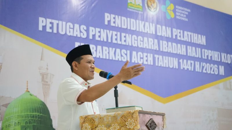 Banda Aceh I Atjeh Terkini.id- Wakil Gubernur Aceh, Fadhlullah, S.E., meresmikan Pendidikan dan Pelatihan Petugas Penyelenggara Ibadah Haji (PPIH) Kloter Embarkasi Aceh Tahun 1447 H/2026 M di Aula Arafah, Asrama Haji Aceh, Minggu (1/2/2026), pukul 09.00 WIB.