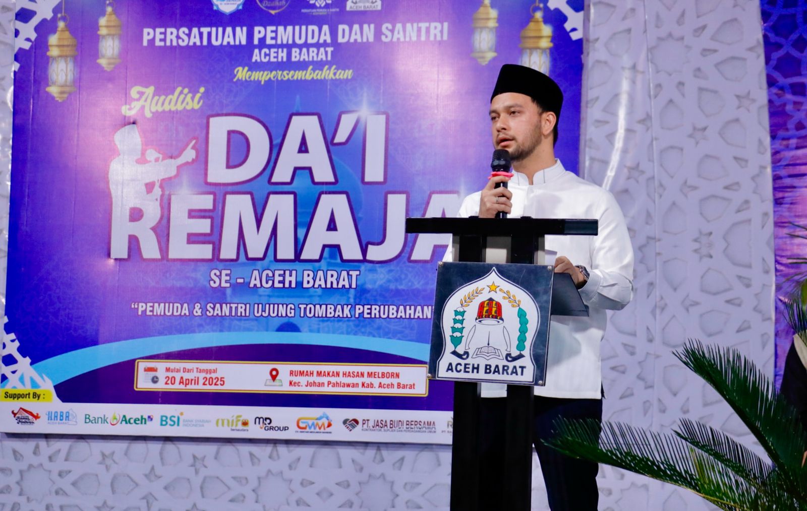 Meulaboh | Atjeh Terkini.id – Audisi Da’i Remaja Se-Aceh Barat resmi dibuka Wakil Bupati Aceh Barat, Said Fadheil, SH, mewakili Bupati Aceh Barat. Kegiatan ini diselenggarakan oleh Persatuan Pemuda dan Santri Aceh Barat (PPSAB) bertempat di RM Hasan Melborn Meulaboh, pada Minggu, (20/2025) malam.