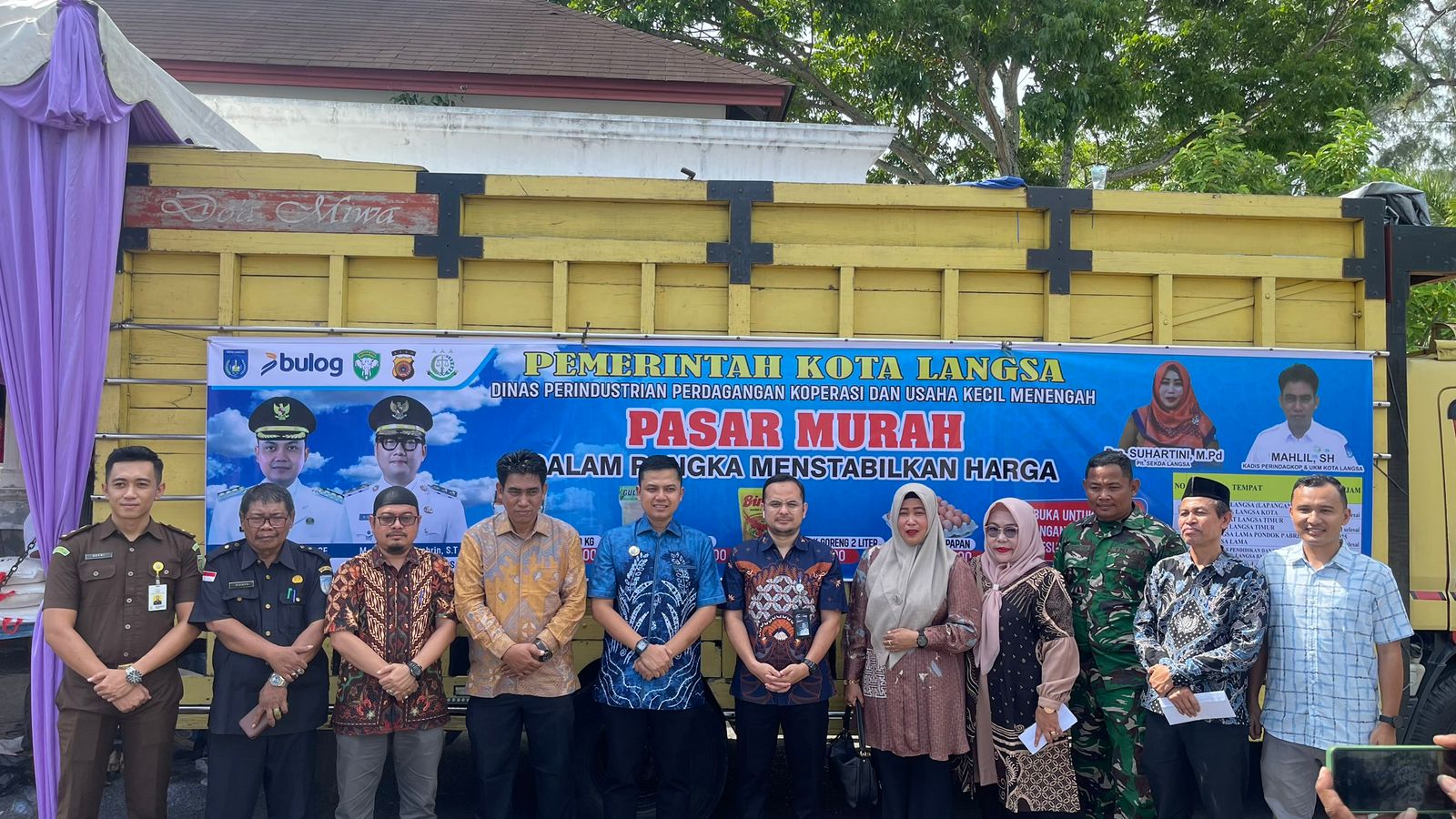 Langsa | Atjeh Terkini.id – Walikota Langsa Jeffry Sentana S Putra, SE beserta Plt.Sekdakota Langsa Sekda Kota Langsa Dra Suhartini M.Pd, didampingi Kepala Dinas Perindustrian, Perdagangan, Koperasi, dan Usaha Kecil Menengah (Disperindagkop dan UKM) Kota Langsa  Mahlil, SH, Asisten Bidang Perekonomian dan Pembangunan Pemko Langsa Ali Musafah,SE, Perwakilan Dari Kejaksaan Langsa, Dan Perwakilan dari Kodim 0104/Atim beserta Pemimpin Perum BULOG Cabang Langsa, Nasrizal Ramadhan meninjau langsung Gelar Pasar Murah Pemko Langsa di Lapangan Merdeka Langsa, Kamis (10/07/2025)